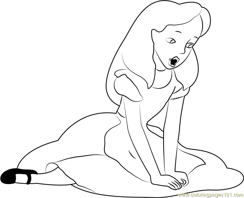 Alice Sitting and See Coloring Page