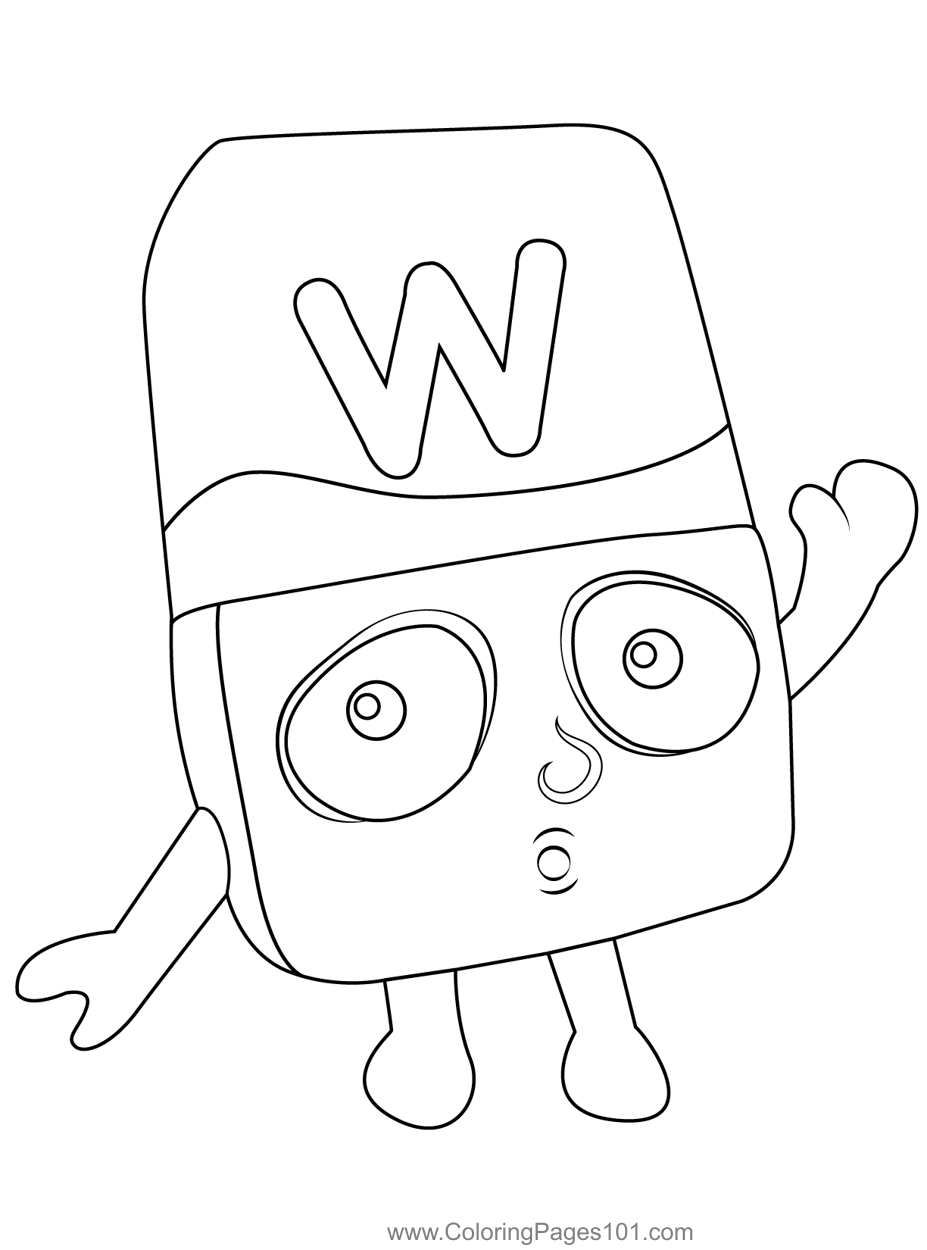 W Small Alphabets Alphablocks Coloring Page
