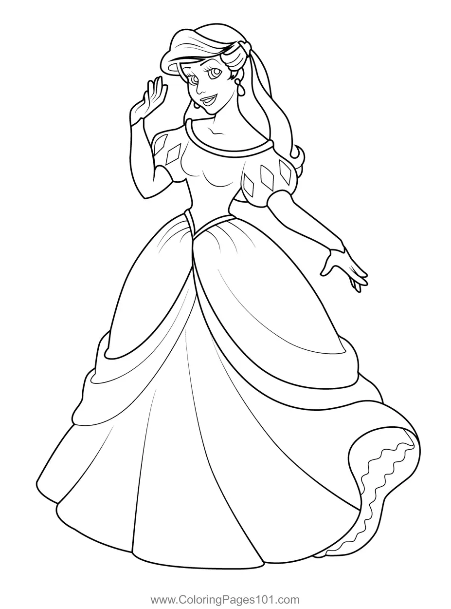 Beautiful Green Dress Ariel Coloring Page