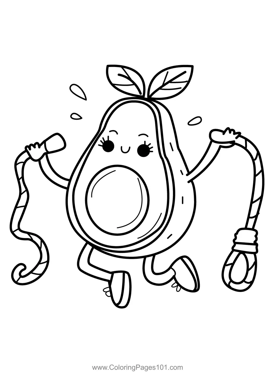 Happy Avocado Skipping Workout Coloring Page