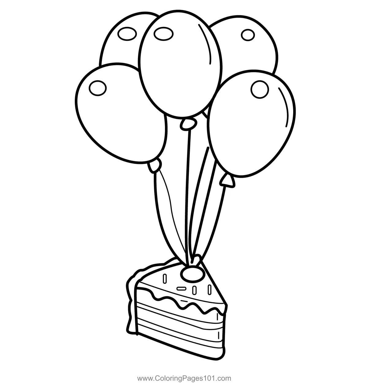 Birthday Cake Slice with Balloons Coloring Page