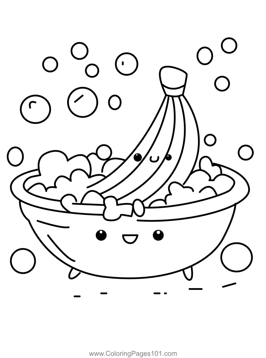 Happy Banana Bath Time Coloring Page