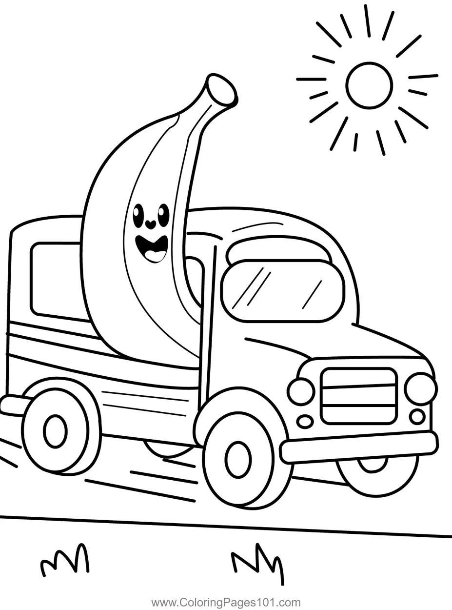Happy Banana Truck Ride Coloring Page