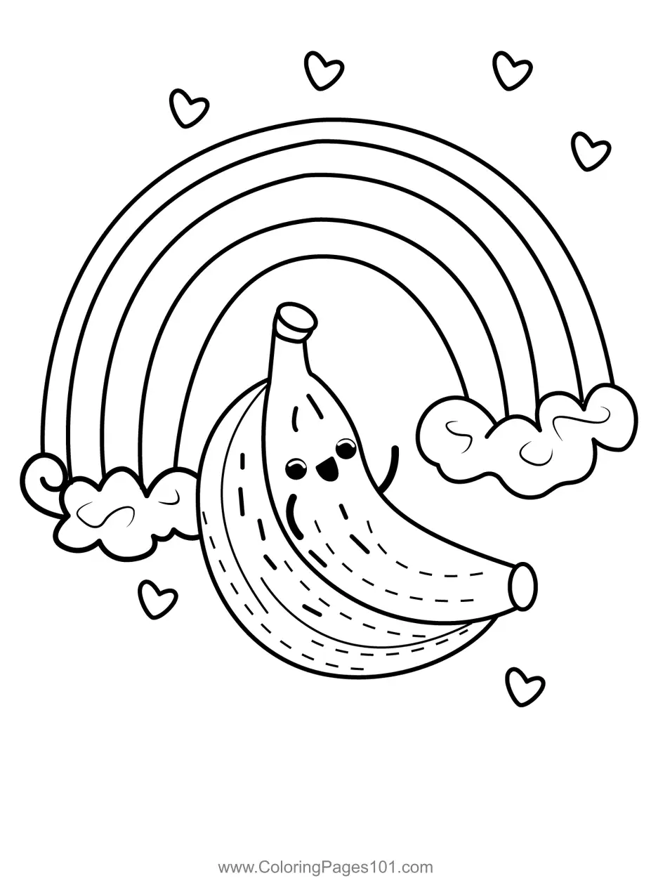 Happy Banana Under Rainbow Coloring Page