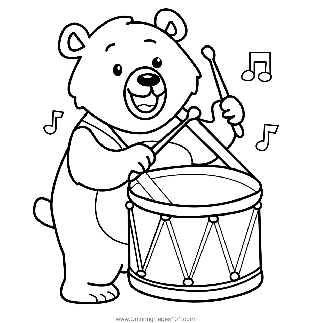Happy Bear Playing Drum Coloring Page
