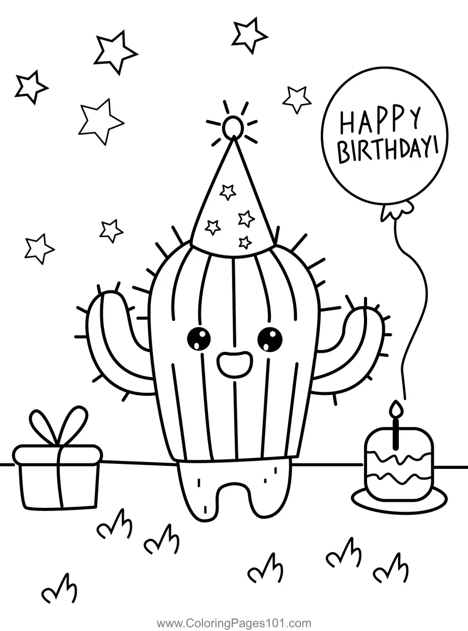 Cute Cactus Birthday Celebration Coloring Page