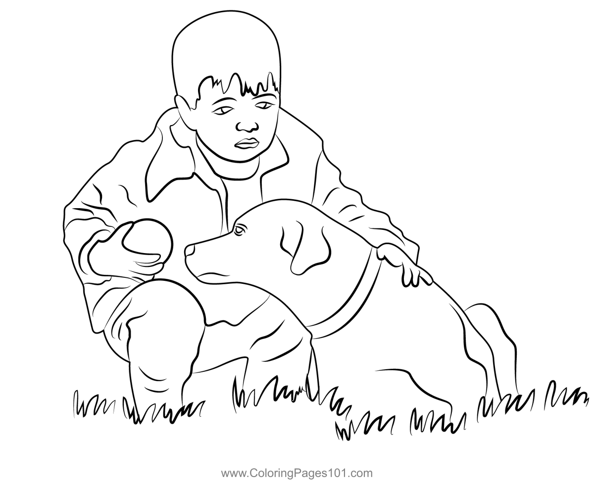 Boy Play With Dog Coloring Page