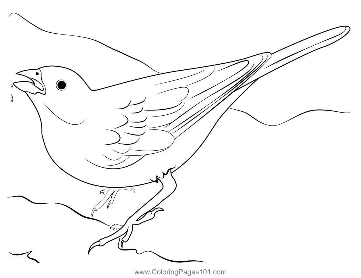 Lark Bunting Bird Drink Water Coloring Page