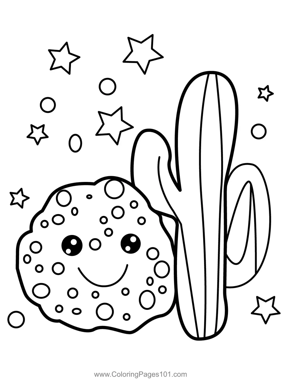 Smiling Cookie and Cactus Duo coloring page