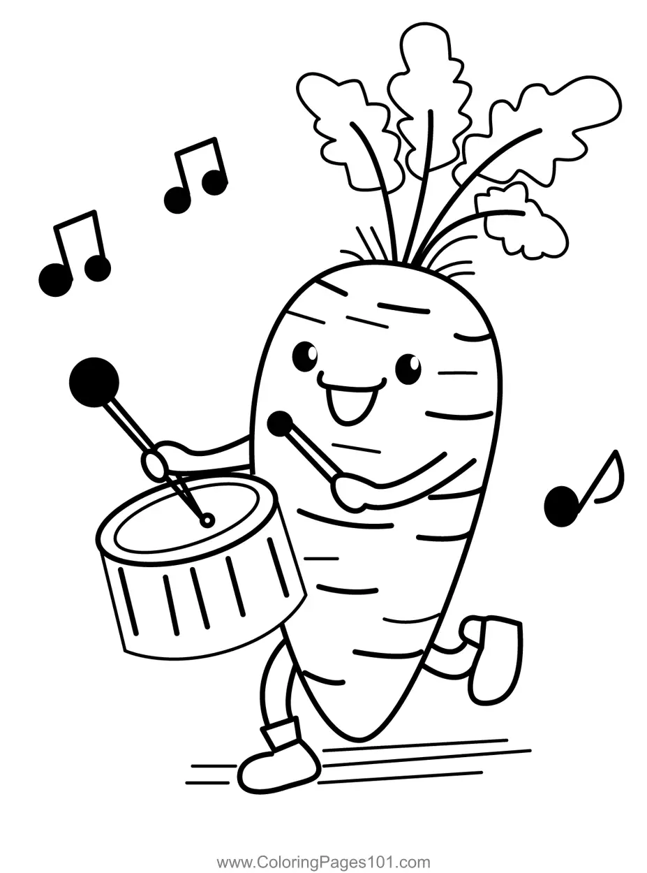 Happy Carrot Drum Player Coloring Page
