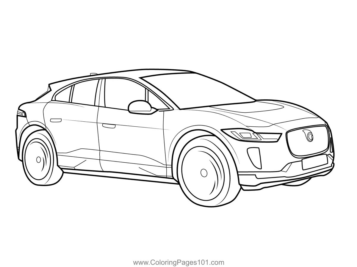 Jaguar I-Pace Electric SUV View Coloring Page