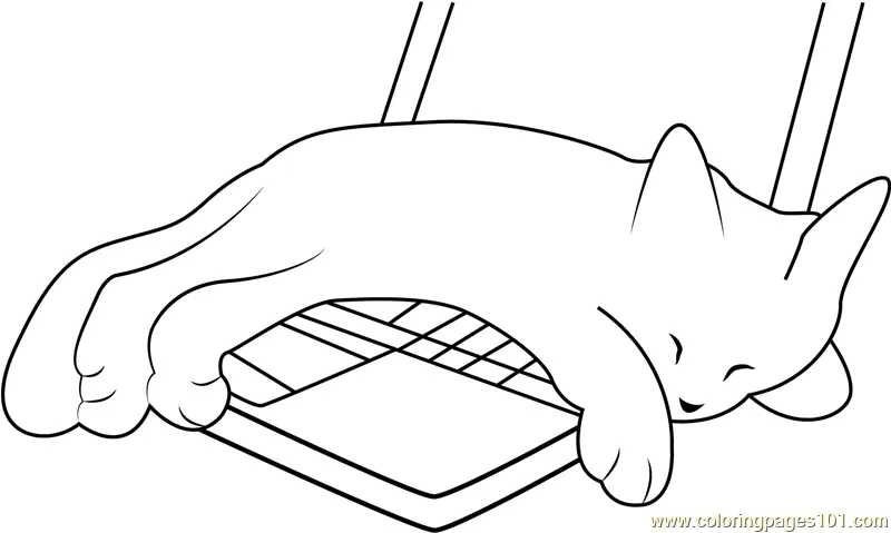 Kitten Sleeping on Laptop Coloring Page