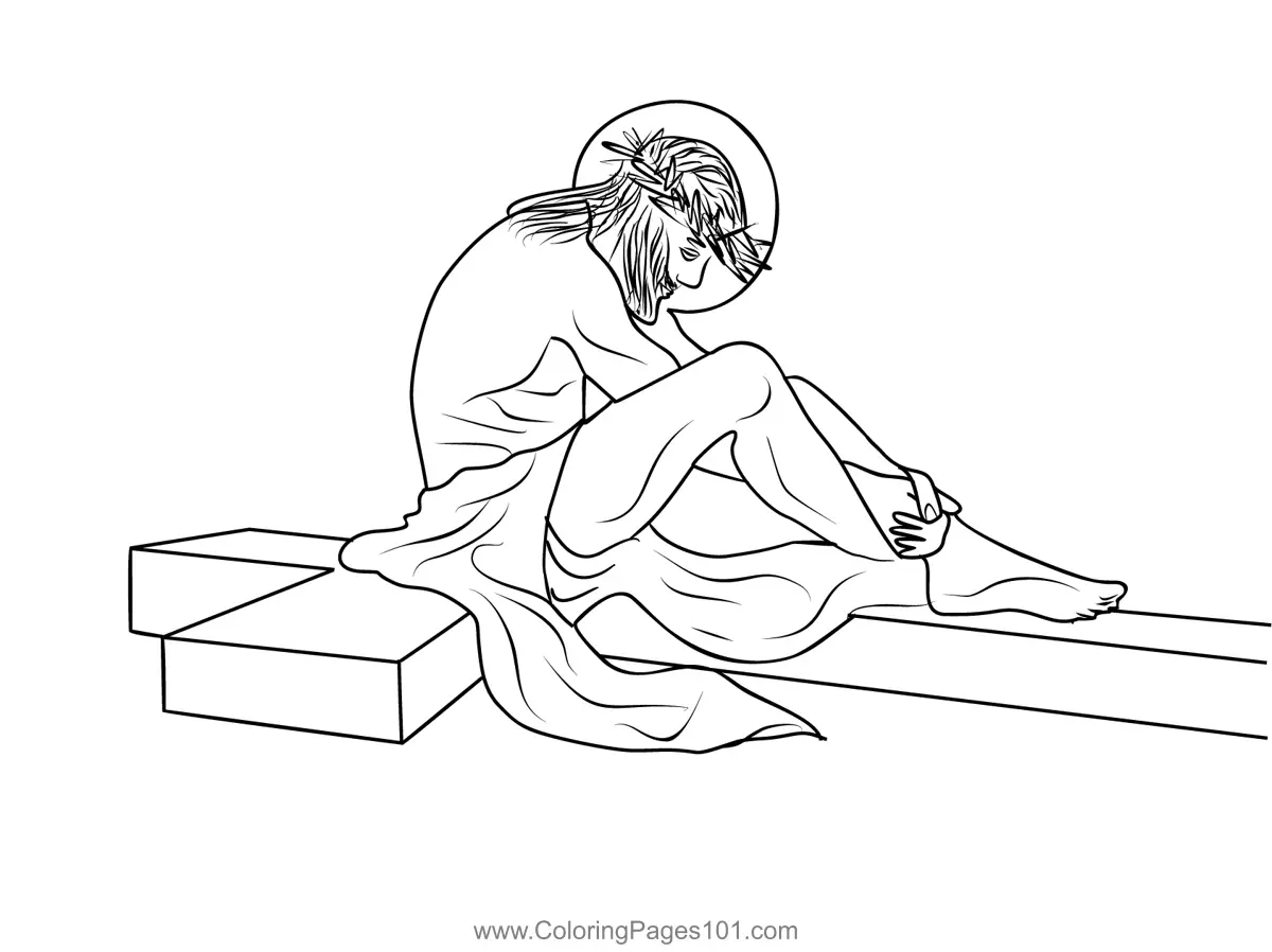Jesus Sitting His Cross Coloring Page
