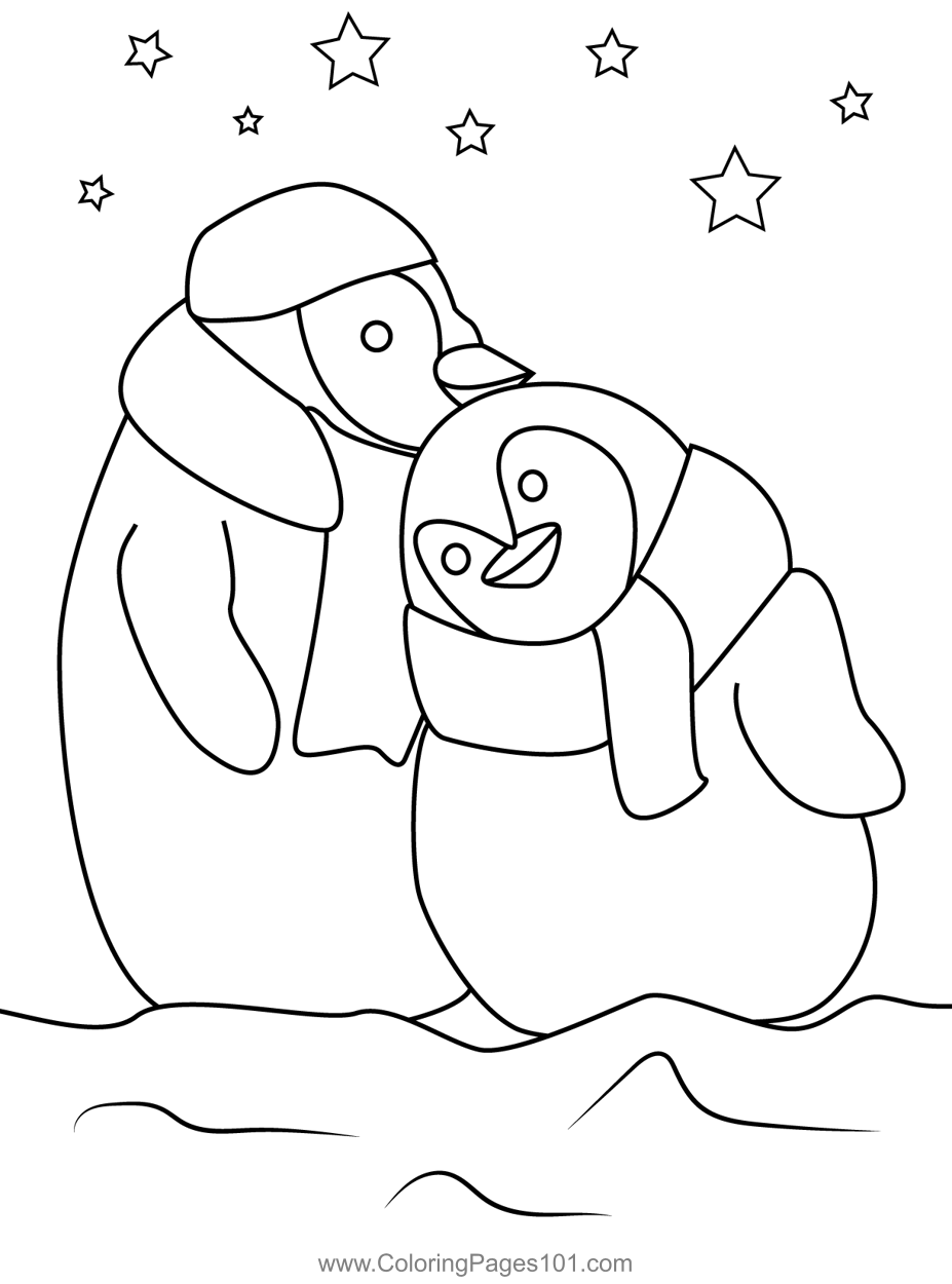 Christmas Penguin Couple Coloring Page
