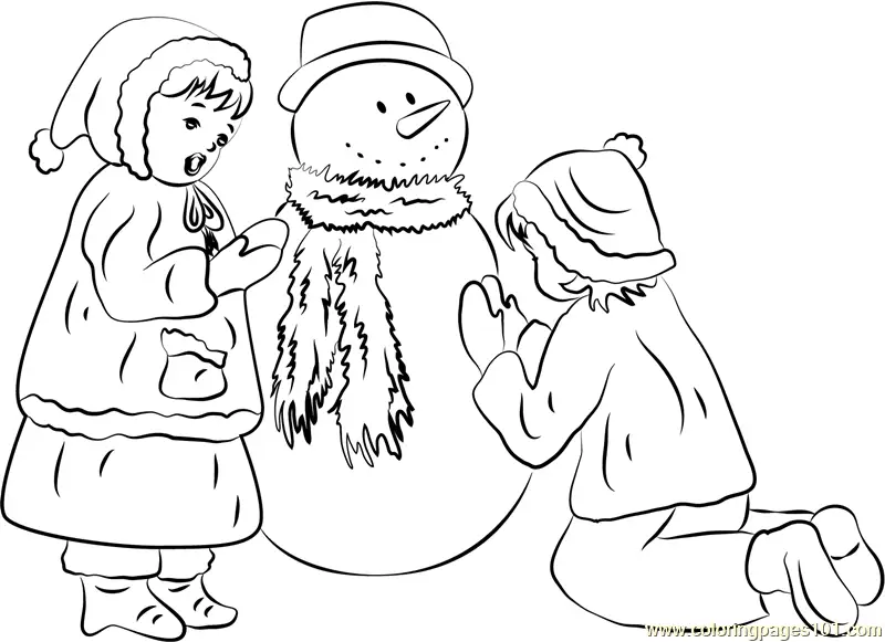 Snowman with Children Coloring Page