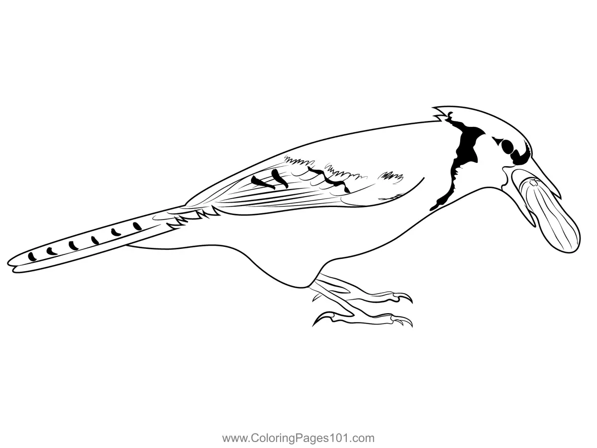 Blue Jay With Peanut Coloring Page