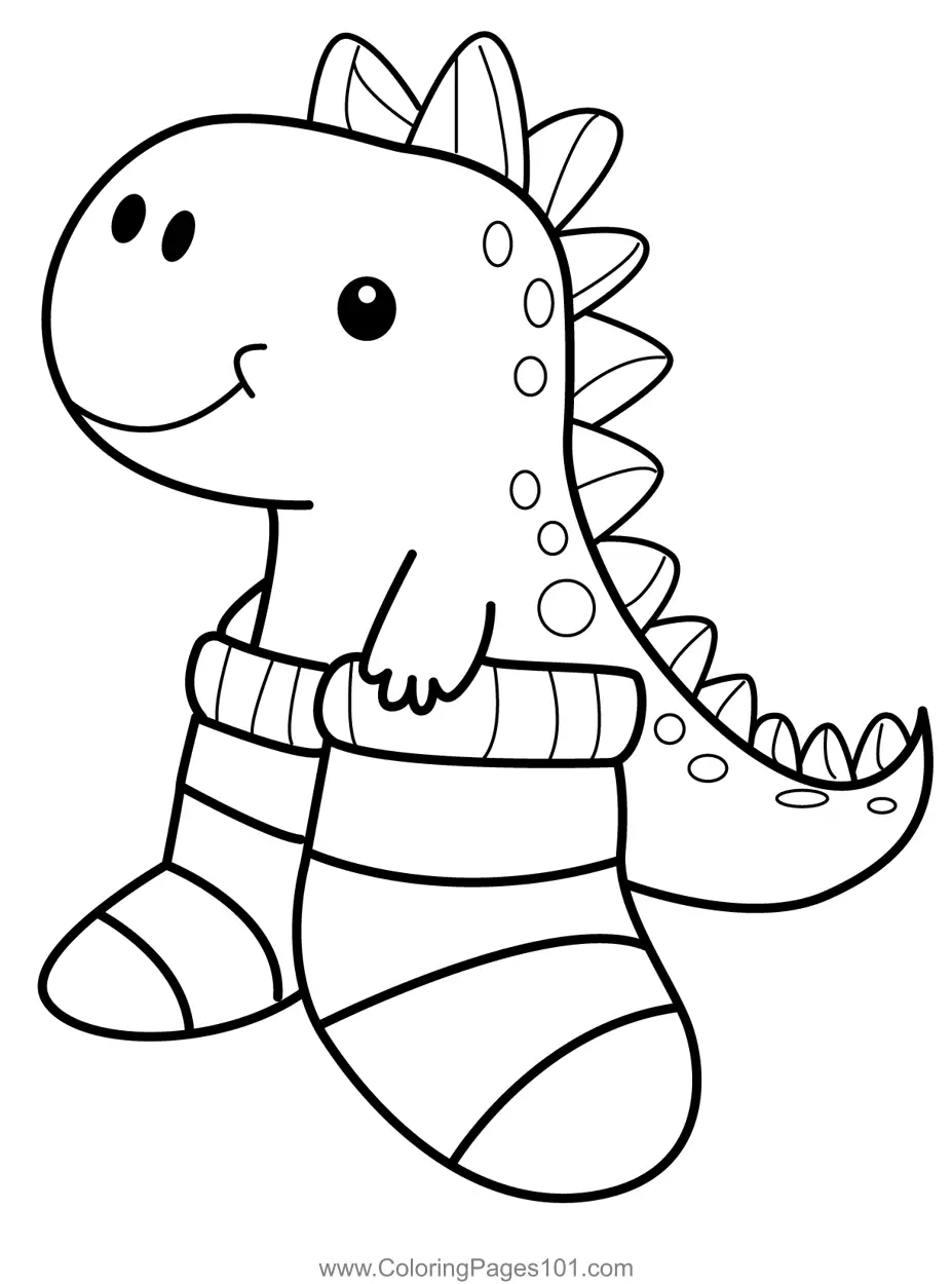 Cute Dino in Cozy Socks Coloring Page