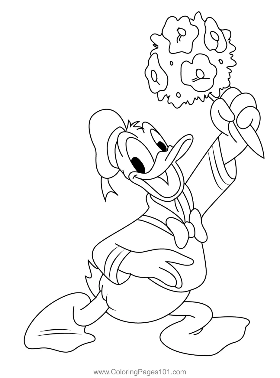 Donald Duck With Flowers Coloring Page