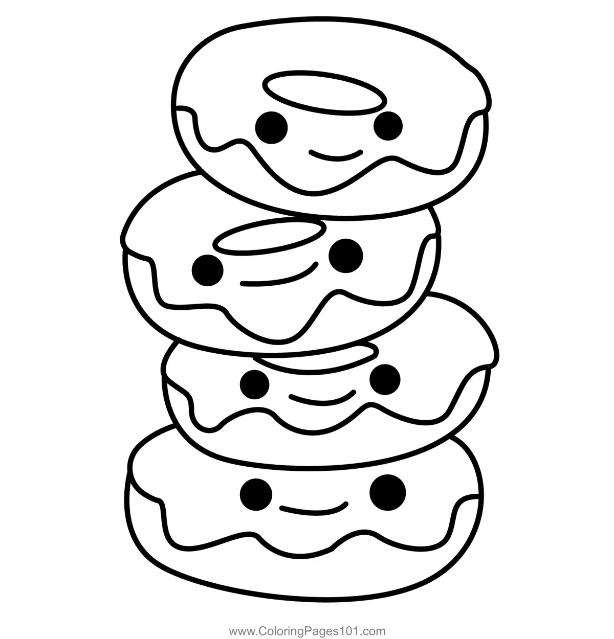 Stacked Smiling Donuts Coloring Page