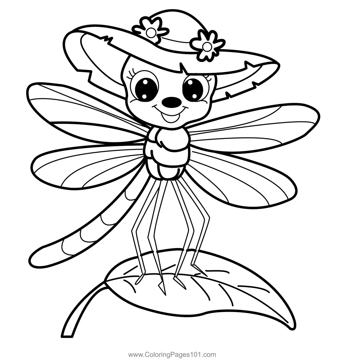 Smiling Dragonfly Wearing Hat Coloring Page