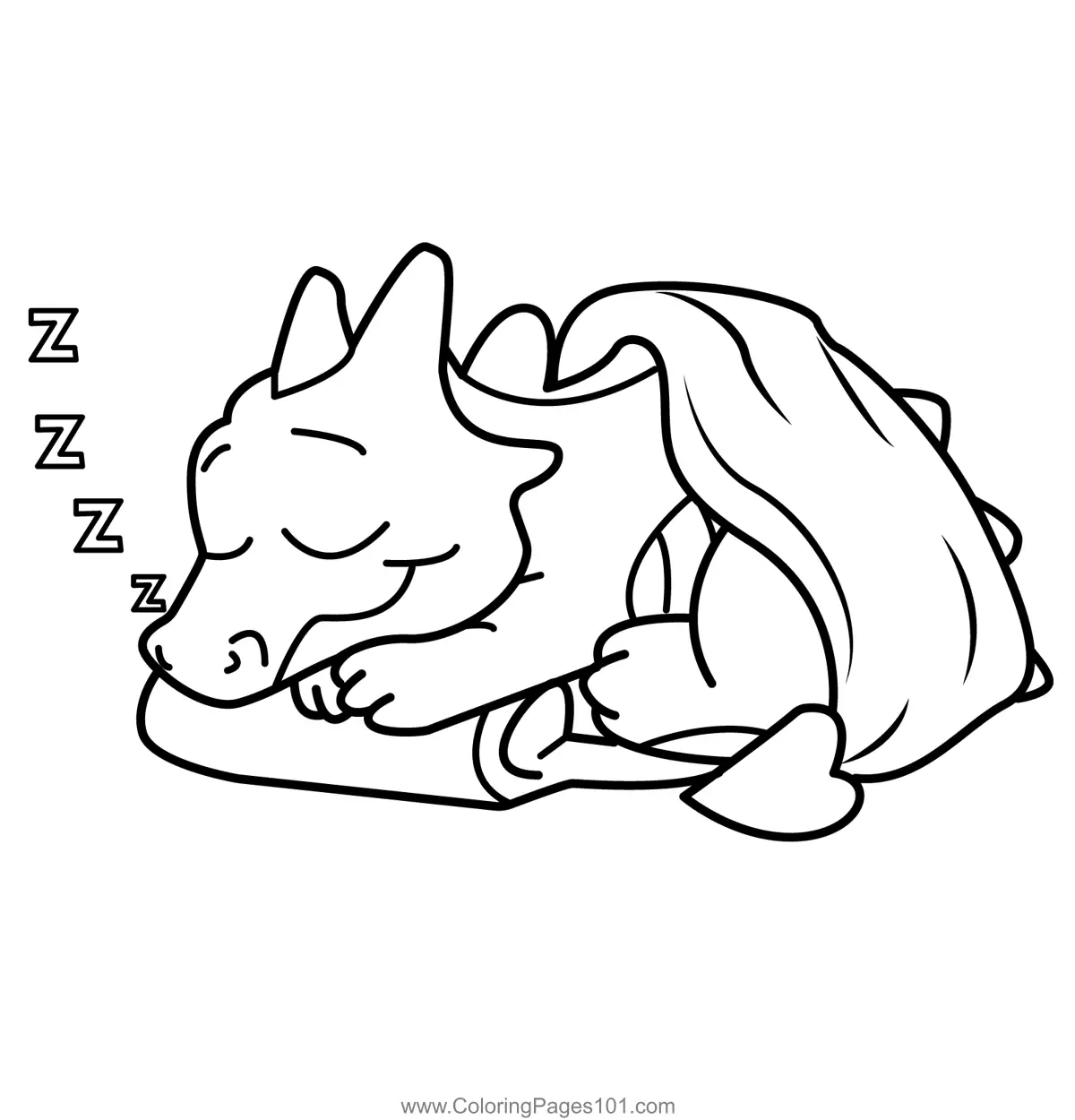 Sleepy Little Dragon Sleeping Coloring Page