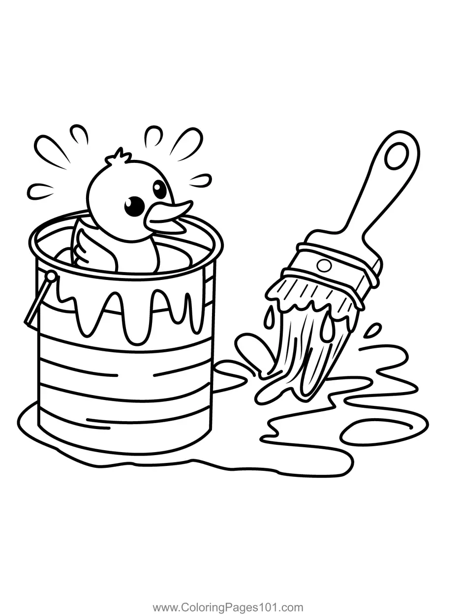 Ducky's Paint Can Adventure Coloring Page
