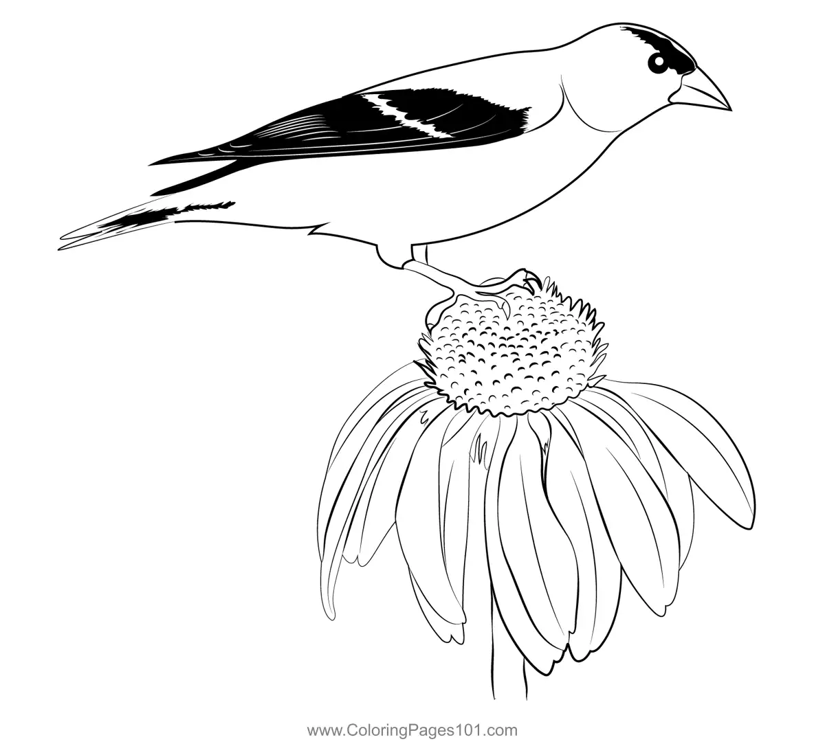 American Goldfinch On Flower Coloring Page
