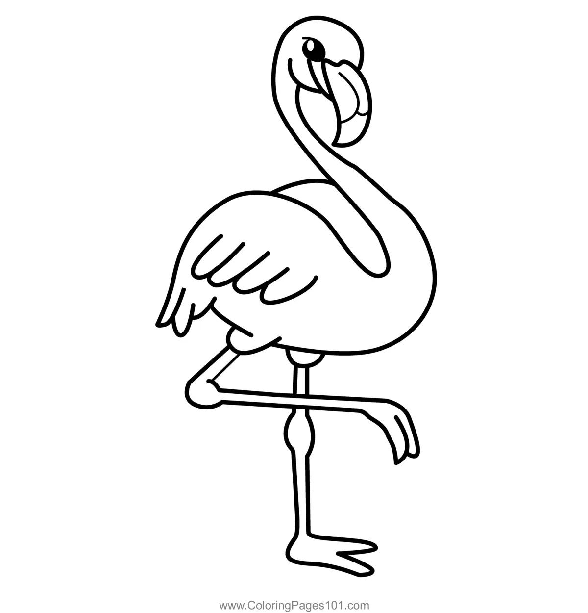 Happy Cartoon Flamingo Standing Coloring Page
