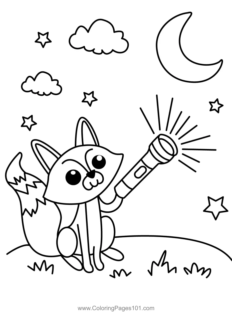 Fox's Nighttime Outdoor Adventure Coloring Page