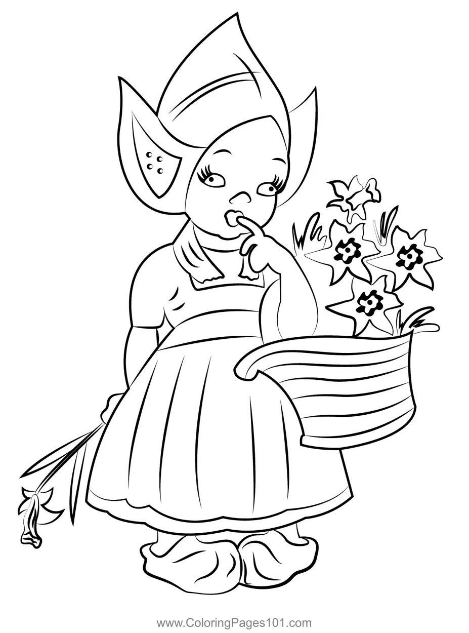 Girl with Flowers coloring page