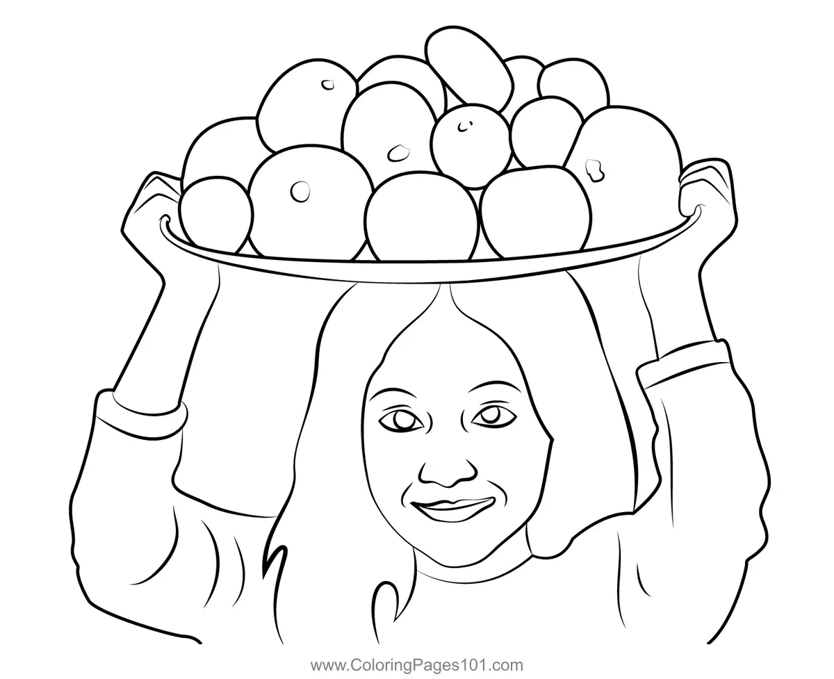 Girl Carrying Fruit Basket Coloring Page