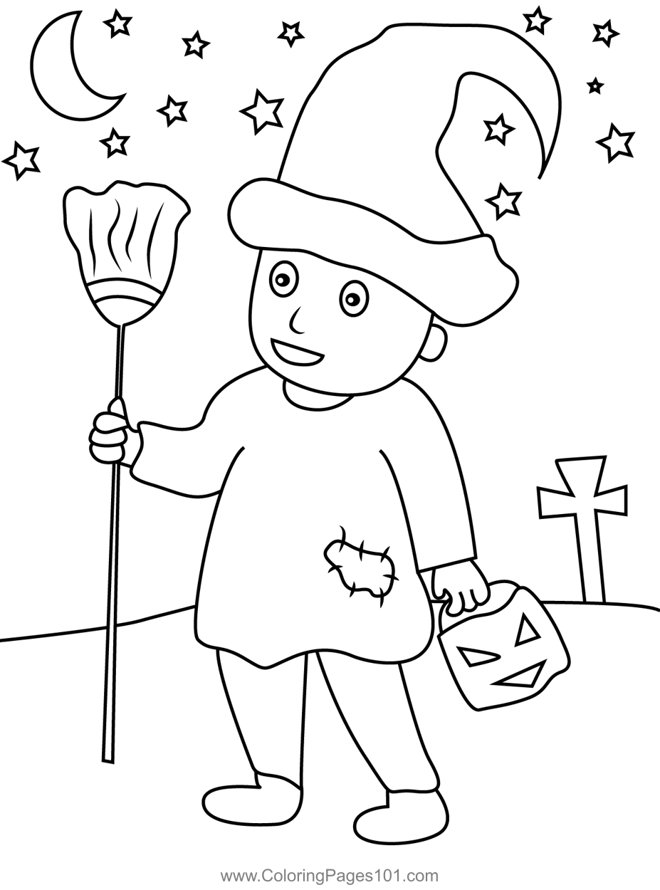 Boy With Halloween Costume Coloring Page