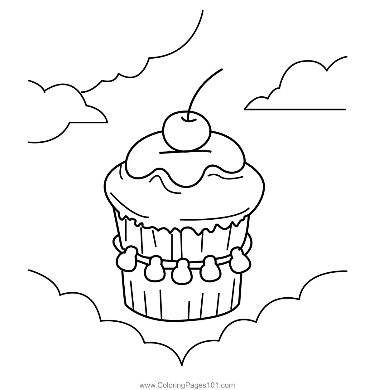 Cupcake Floating Air Balloon Coloring Page