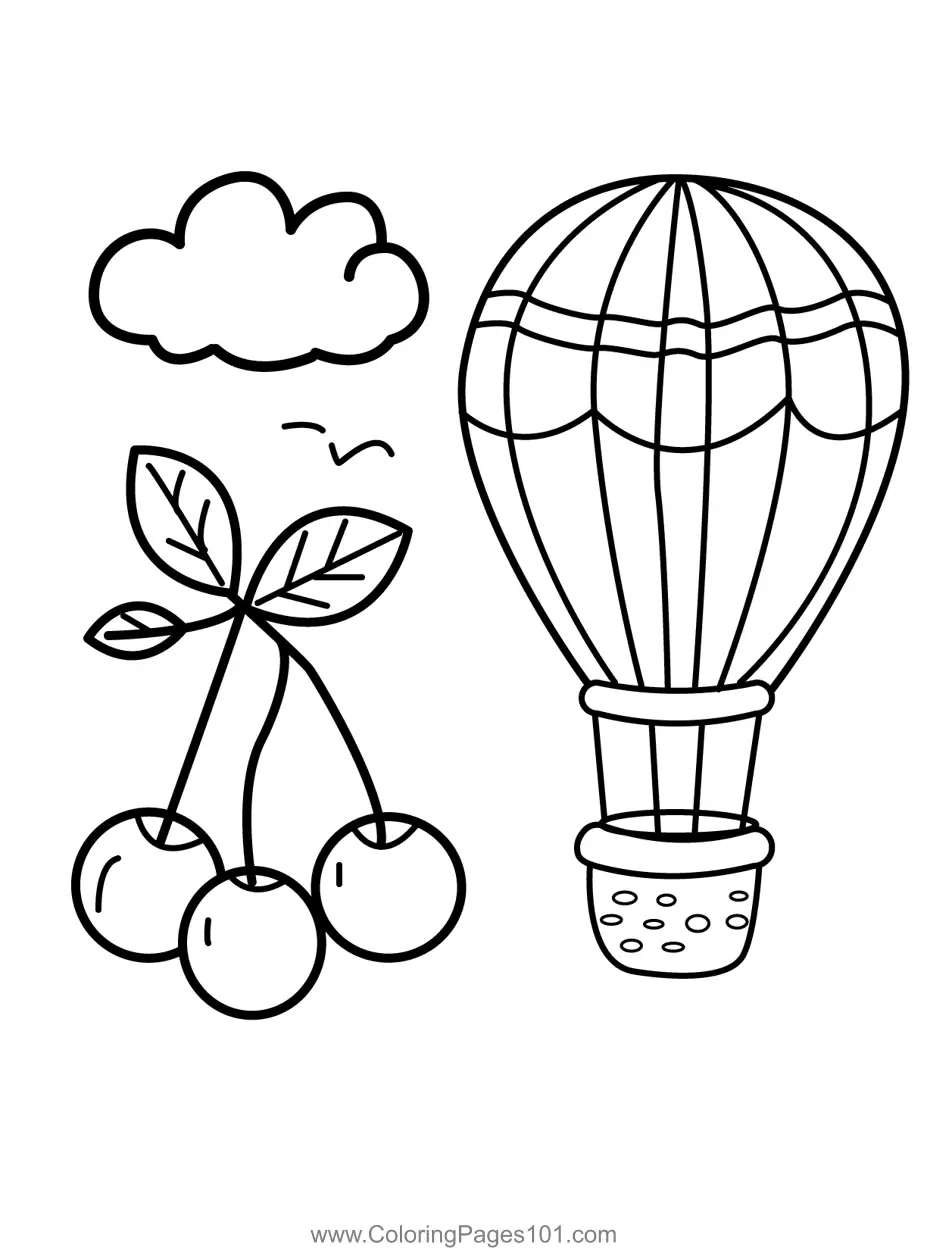 Cherry Balloon Sky Journey Coloring Page