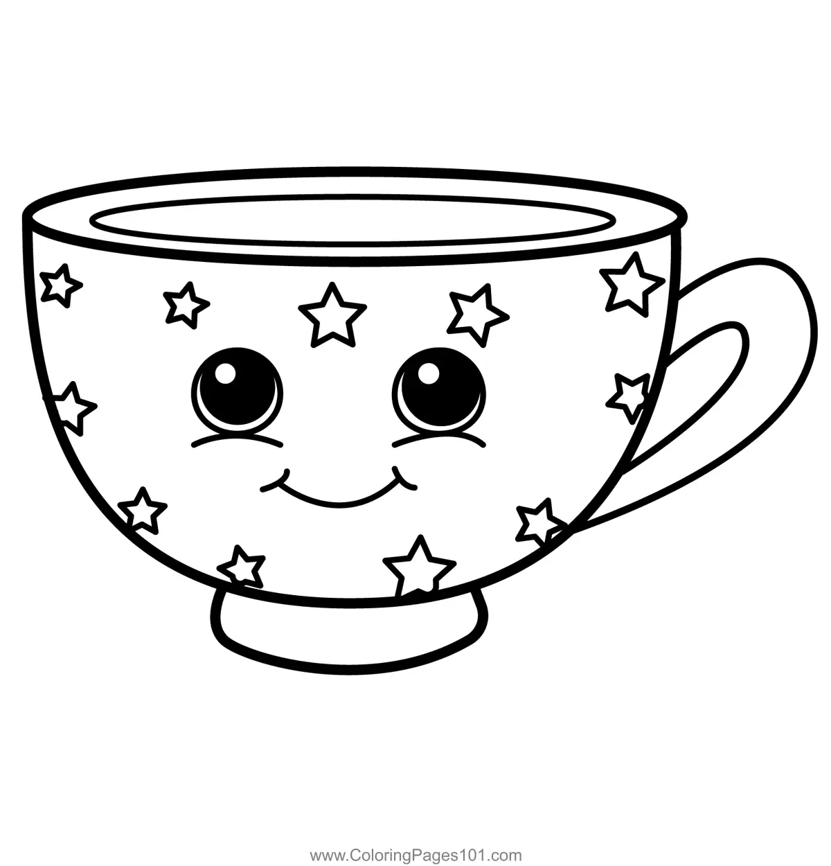 Smiling Starry Teacup Character coloring page
