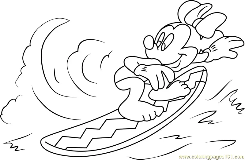 Minnie Mouse Surfing Coloring Page
