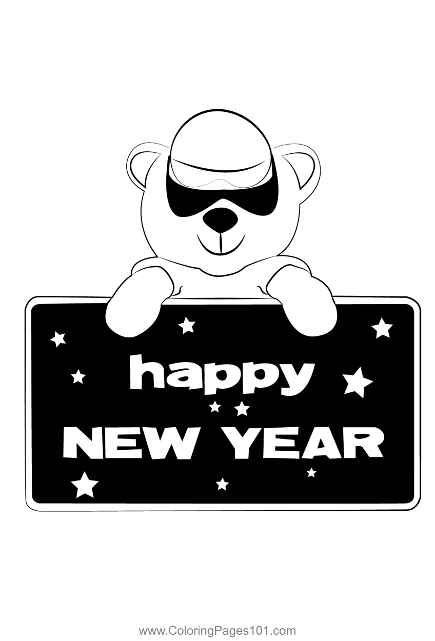 Happy New Year Teddy Bear Coloring Page