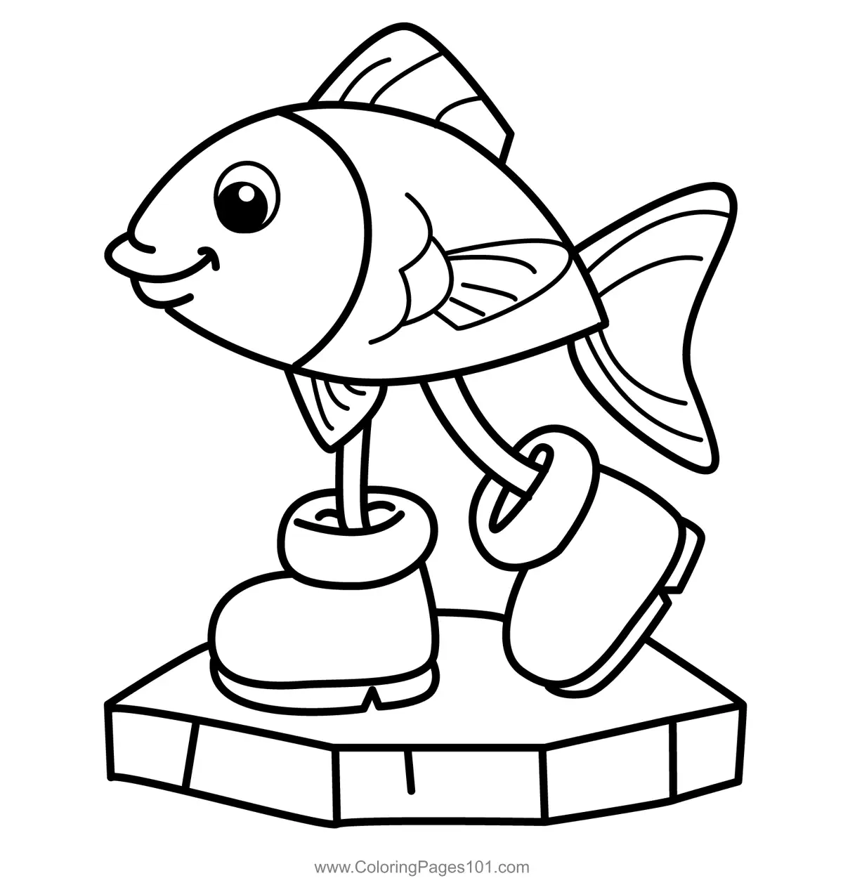 Fish wearing snow boots Coloring Page