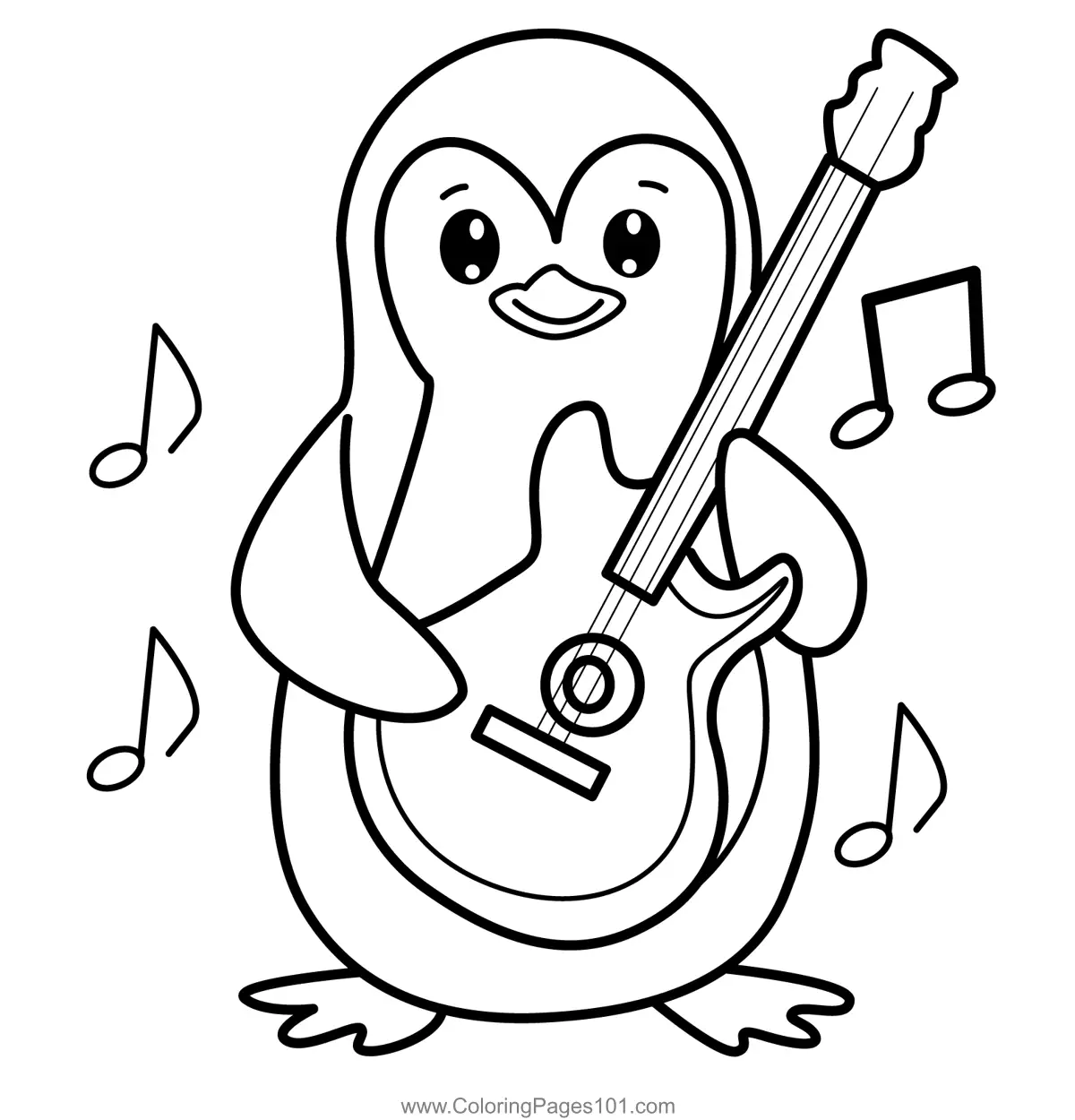 Penguin Playing Air Guitar Coloring Page