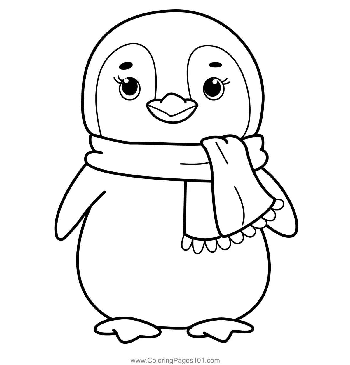 Cute Penguin Wearing Scarf Coloring Page