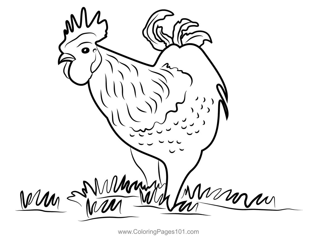 Rooster Standing In Farm Coloring Page