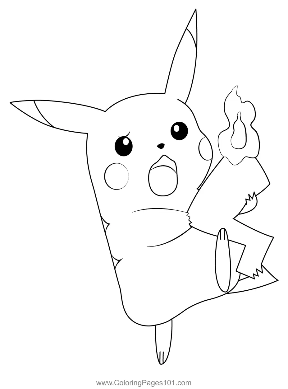 Pikachu With Burning Tail Coloring Page