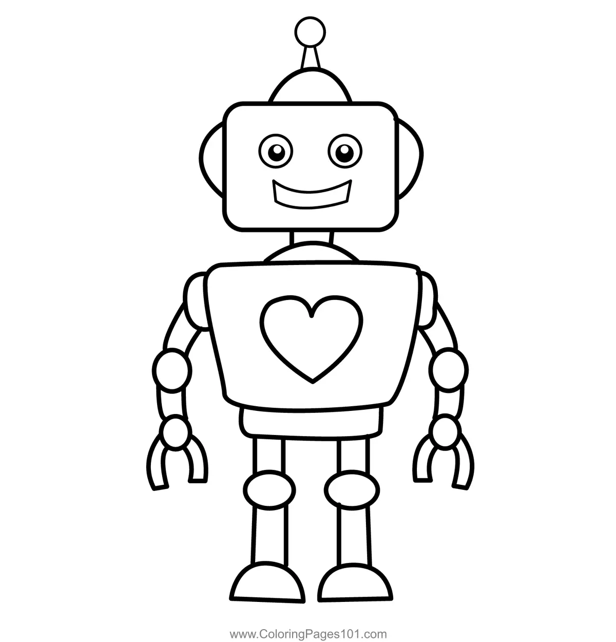 Friendly Robot with Heart Emblem Coloring Page