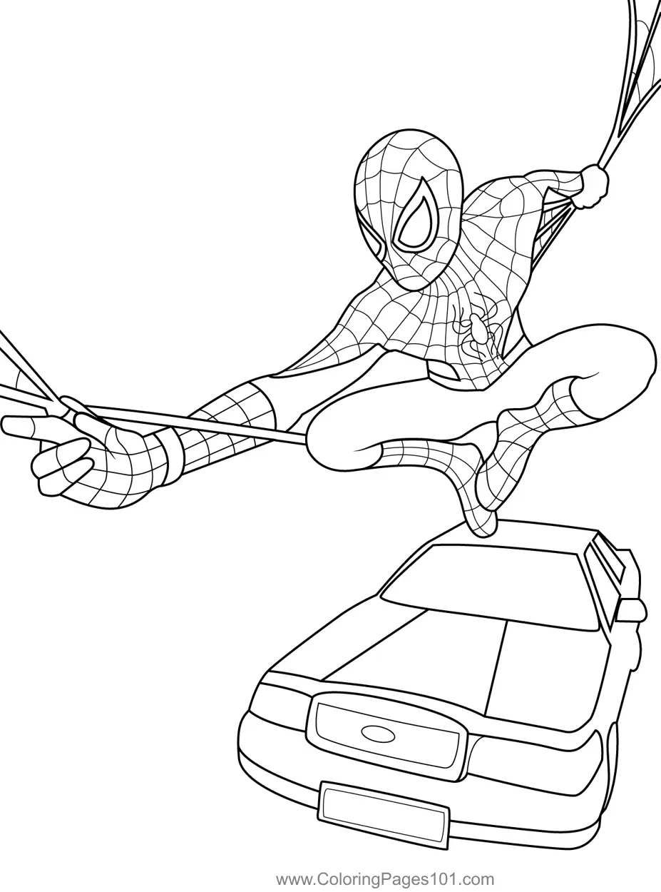 Spiderman on Cab Coloring Page