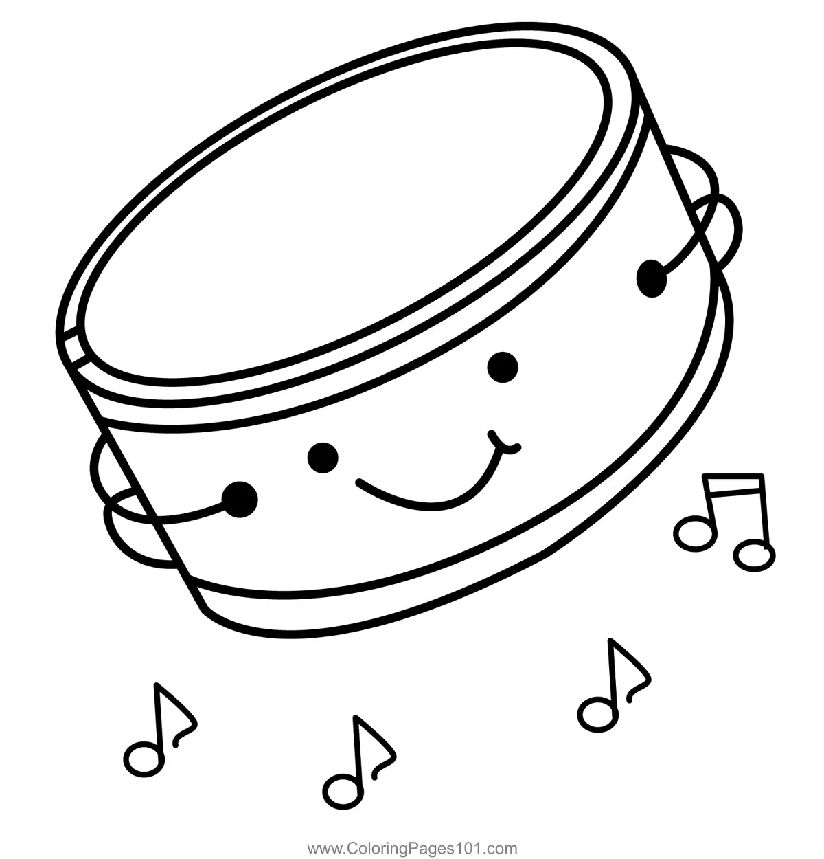 Tiny Tambourine with Music Notes Coloring Page