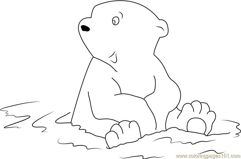 Little Polar Bear Sitting in Water Coloring Page