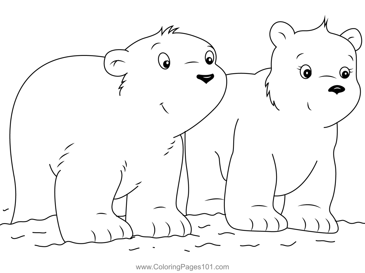 Walking Little Polar Bear Coloring Page