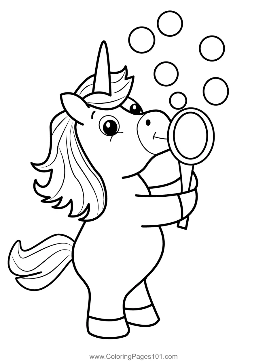 Magical Unicorn Blowing Bubbles Coloring Page