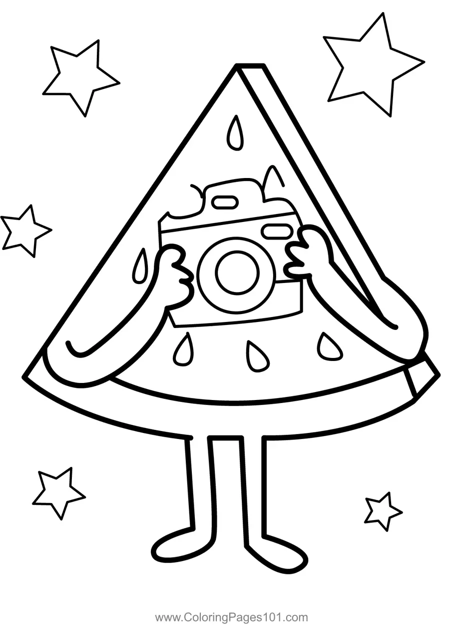 Watermelon Slice Takes Picture Coloring Page