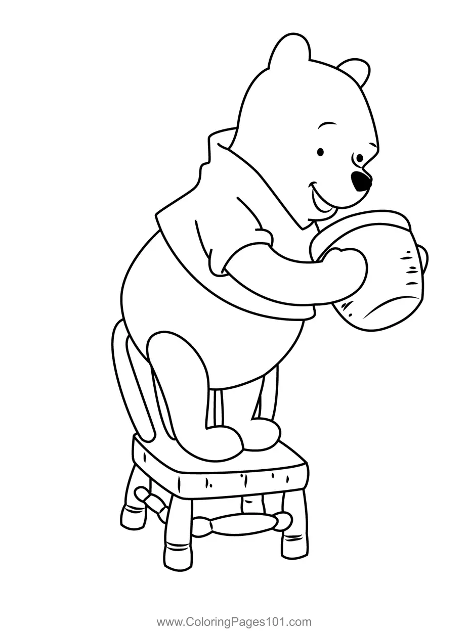 Pooh Bear Standing On Chair Coloring Page